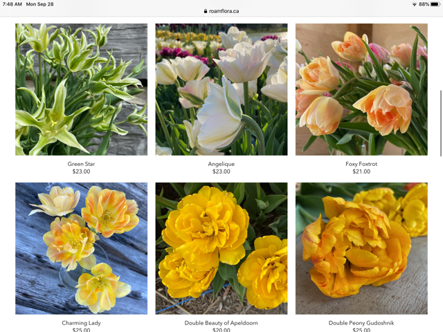 Some of the tulips on offer at Roam Flora, a local flower grower….